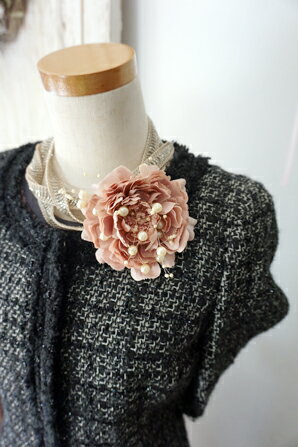 ◆New Color!!◆◆エクリュ・アンティーク ピンク ◆◆◆『Ecru -Antique Pink-』 パールを添えてフォーマルな場にもカジュアルにも使えるコサージュです。